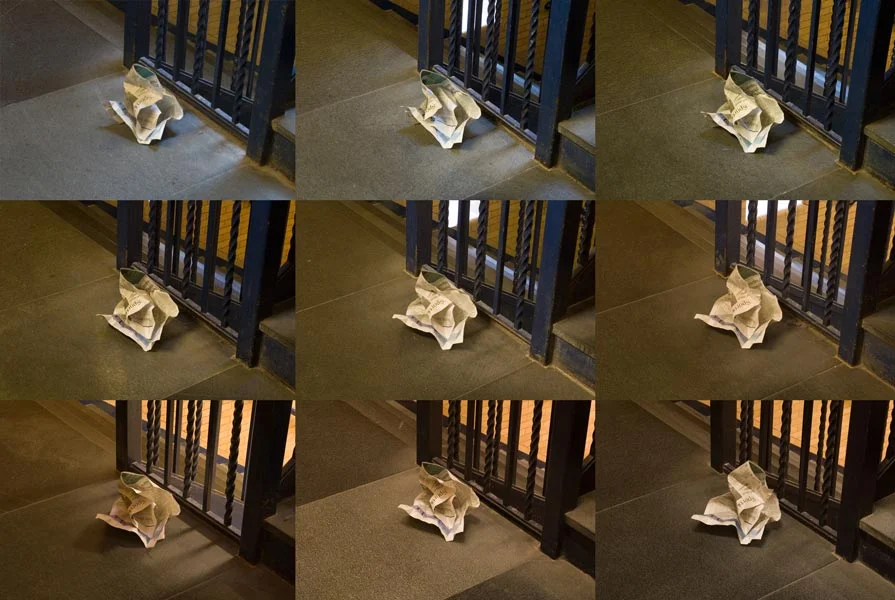 2009. Wrinkled newspaper from a series featuring identical trash placed within architectural rhythms.